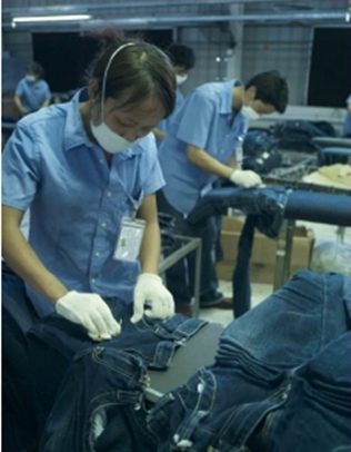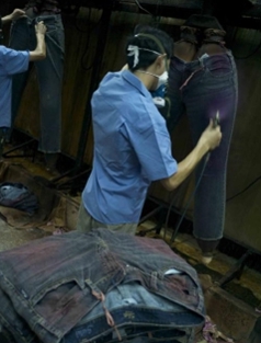 通??蛻粜枰獙⒃谙此^程反染在牛仔褲內(nèi)側(cè)的染料去除掉,因?yàn)槿玖现苯咏佑|皮膚是非常不合理,也是不環(huán)保的做法,因此很多化學(xué)藥劑就用來處理這些染料;但是在達(dá)到效果的同時又產(chǎn)生了一系列的問題,比如環(huán)境的污染,工作環(huán)境惡劣,對操作工人的個人安全的影響等等問題。